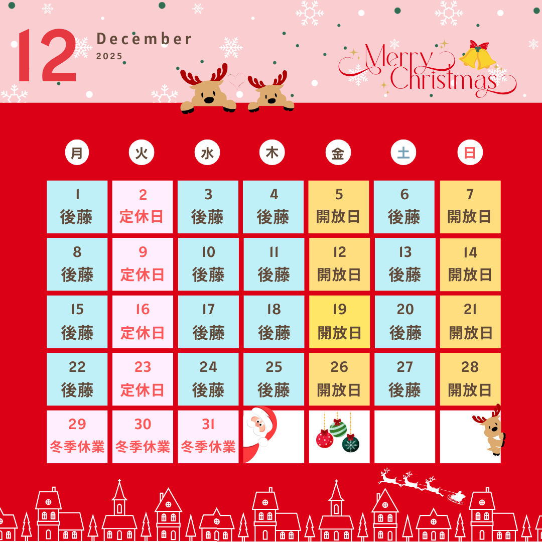 2025年12月のスイング中央レッスン担当カレンダーです☃️❄️